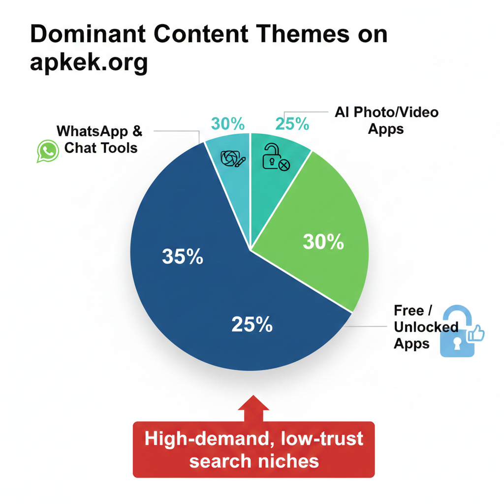 apkek.org presents itself as a website that combines blog-style articles with APK download links. On the surface, it resembles an “alternative app store,” but structurally it behaves more like a content-driven site that embeds download links inside informational posts.