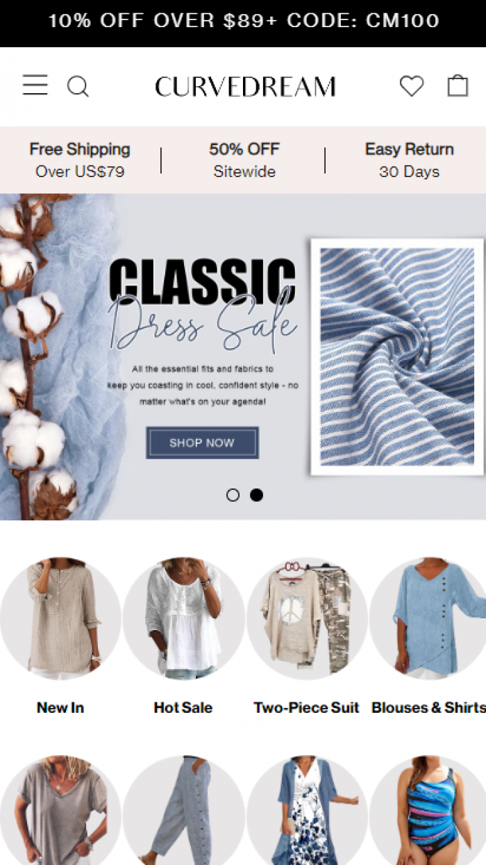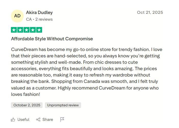CurveDream presents itself as a modern fashion retailer. The messaging is familiar. Stylish clothing, flattering fits, curated collections, and a smooth shopping experience. It leans heavily into visual appeal, which is expected in fashion.