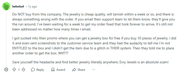 Overall, Reddit skews more critical than positive, with a common message: treat Evry Jewels as hyped‑up fast fashion jewellery, not as long‑lasting investment pieces.