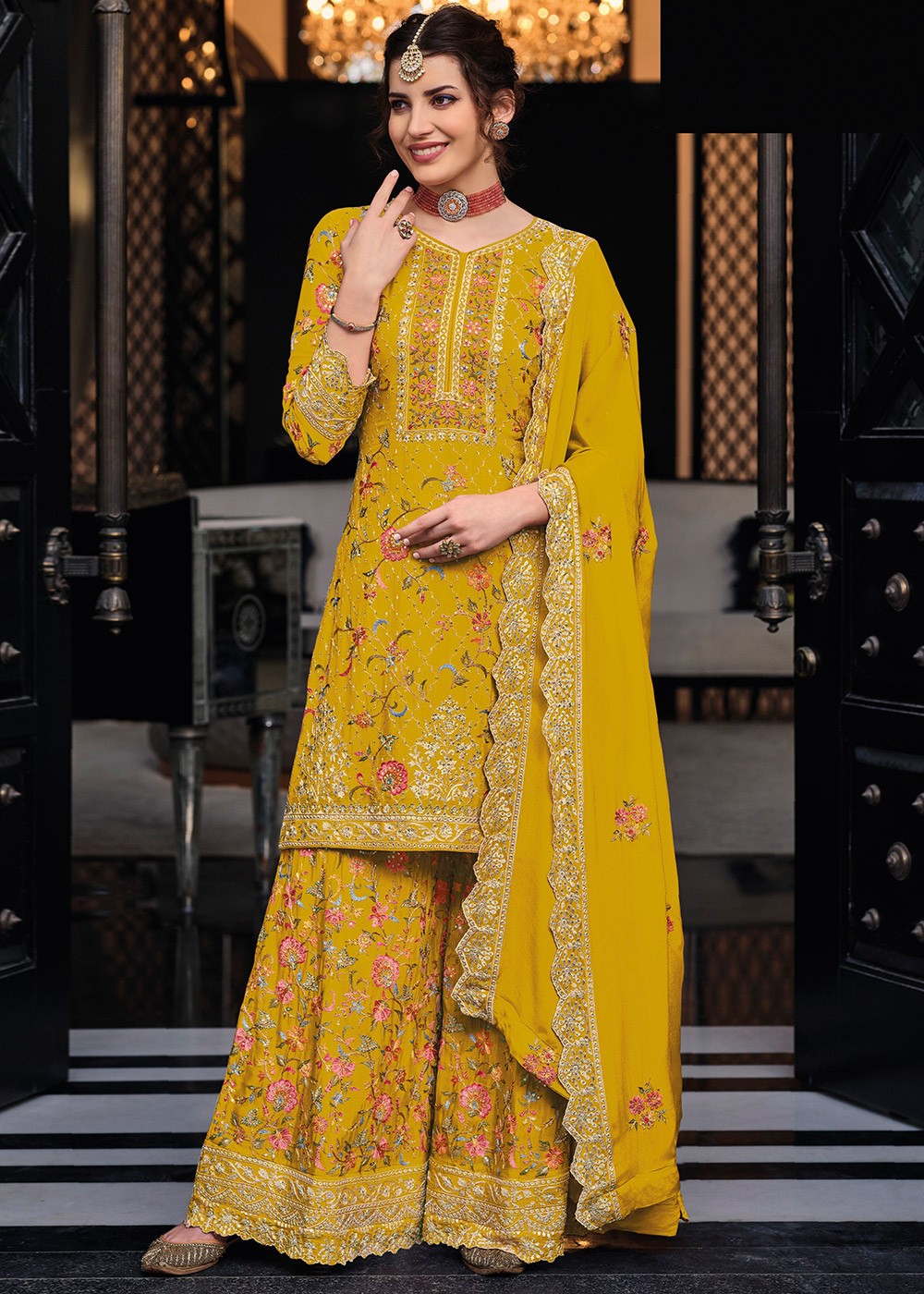 Sharara Suit A sharara with a flared bottom and an embroidered kurti creates the perfect balance of elegance and modernity. Elevated but never overdressed.