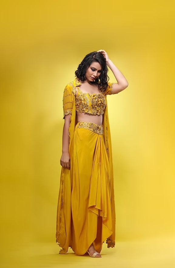 Should Haldi outfits be yellow only? While yellow is tradition, modern brides experiment with prints, pastels, and even multicolored tie-dye styles for a unique twist.