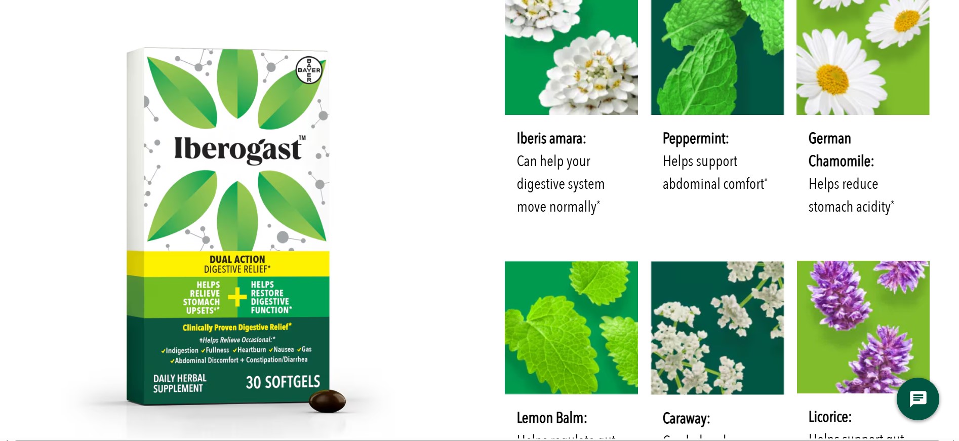 Iberogast combines nine medicinal herbs, including Iberis amara (bitter candytuft), chamomile, peppermint, caraway, milk thistle, licorice root, and Melissa officinalis. Together, they aim to reduce inflammation, calm the gut lining, ease cramps, and support healthy digestion.