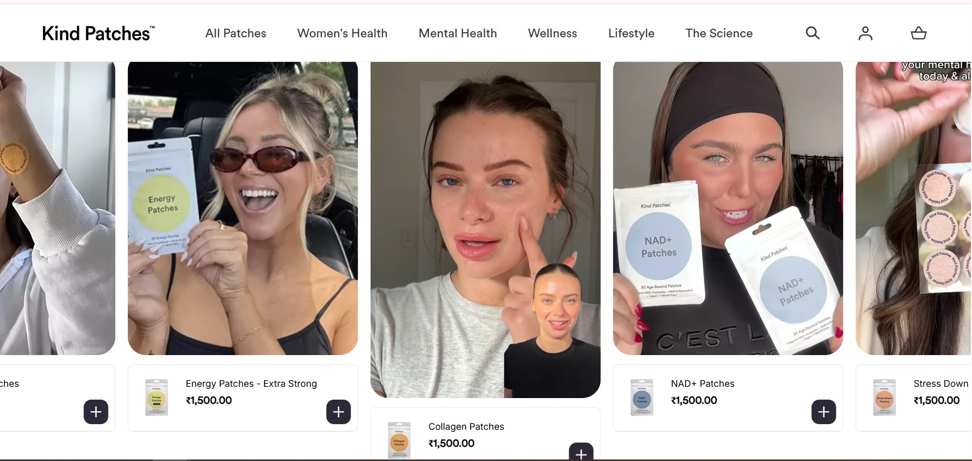 Kind Patches is a wellness brand selling transdermal patches for focus, energy, sleep, skin, and weight-related goals. Product lines include Weightless (formerly “GLP-1” blend), NAD+, Dopamine, Dream Magnesium, Energy (Extra Strong), Brainpower, Focus, Collagen, and Multivitamin.