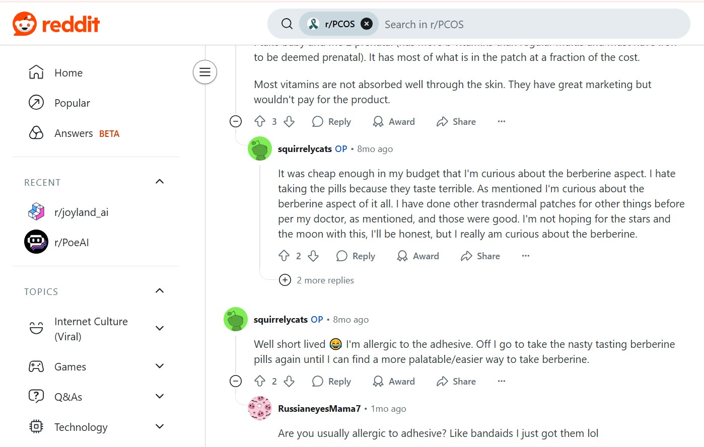 Whether the same benefit carries over to a stick-on patch is unclear.