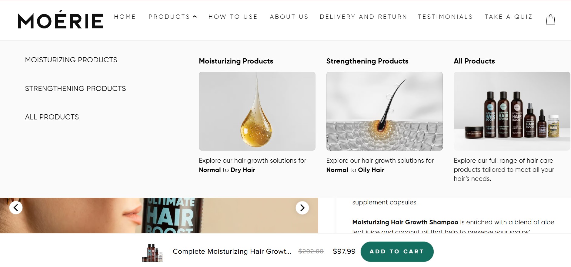 Moérie Beauty offers a full range for thin, damaged, and slow-growing hair, each made with minerals, plant extracts, and vitamins. Their lineup features: