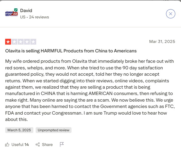 Olavita presents itself confidently, but falls short when scrutinized. The absence of independent clinical proof, paired with multiple user complaints about performance, refunds, and possible deceptive marketing, weakens its credibility. Some users may see a transient glow from moisturizers or smoothing effects, but that is not the same as a long-term wrinkle-reducing effect, which remains unsubstantiated.