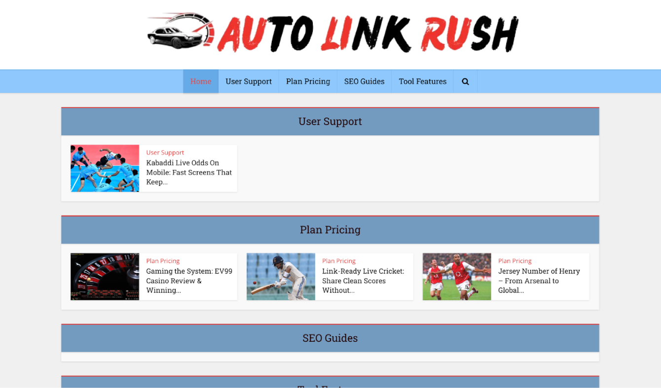 The official AutoLinkRush.com website hosts a “Blog” section filled with unrelated content — casino reviews, online gambling articles, and pharmacy guides. Examples include “XX88 Slots: How to Maximize Wins in 2025” and “Purple Pharmacy Online Ordering.” These have nothing to do with backlinking or SEO tools.