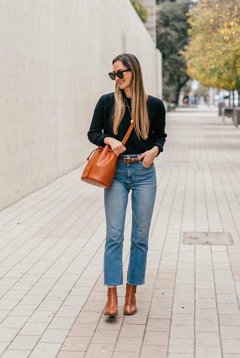 ● Jeans with sharp ankle boots