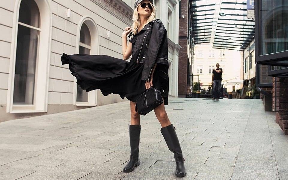 ● Skirts with tall statement boots