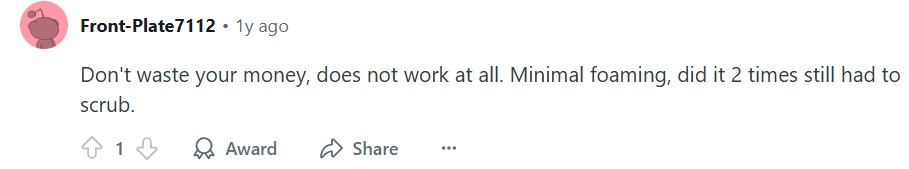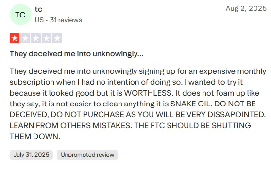 These posts reflect disappointment, especially in the mismatch between marketed foam volume and actual performance. Many say they ended up scrubbing anyway, negating the “no-scrub” claim. Others complain of surprise billing or difficulty in obtaining refunds.
