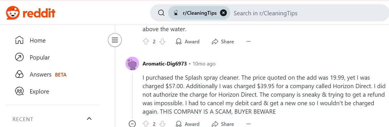 It’s worth noting that some buyers also claimed to be charged by third-party vendors like “Horizon Direct” instead of Splash itself, which led to billing confusion.