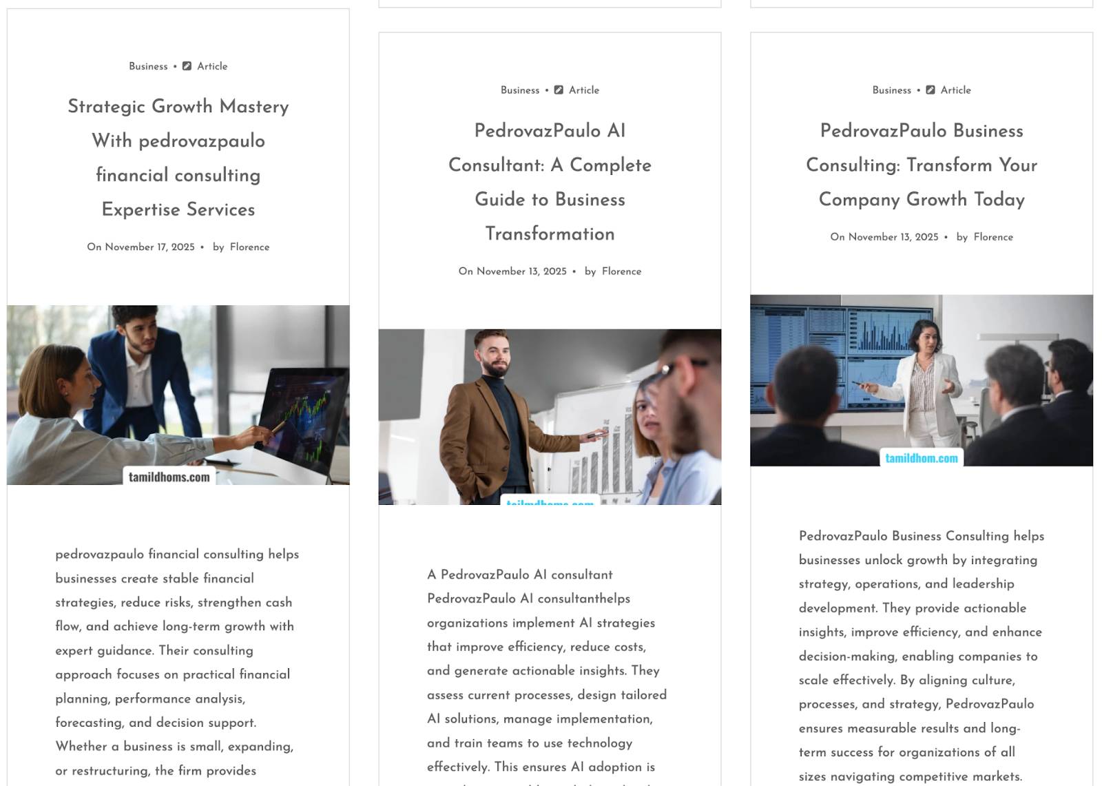 The presence of repetitive business articles about Pedrovazpaulo further suggests that the platform might be part of a promotional campaign rather than a genuine Tamil community site. Authentic hubs for Tamil audiences usually contain film reviews, festival updates, celebrity interviews, language content, or cultural commentary. None of these elements are present on Tamildhooms.com outside of the single introductory article.