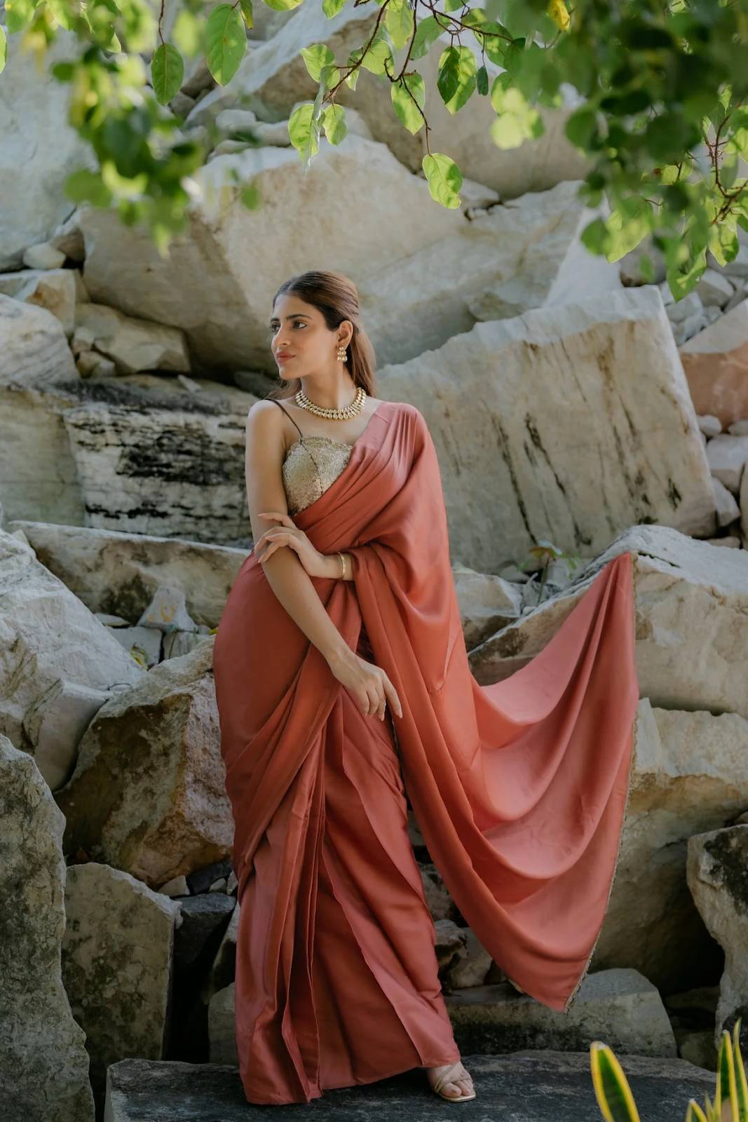 A warm, inviting pink-peach that brings a natural glow to outfits.